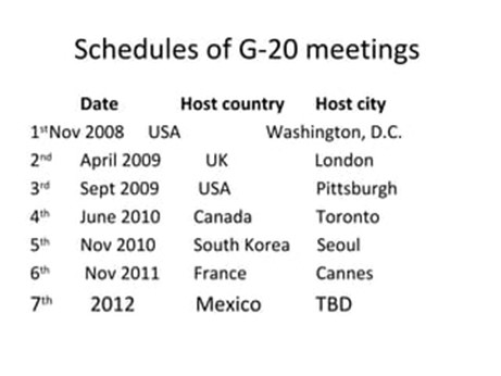 - G-20 group was founded in 1999 after the Asian financial crisis (1997).