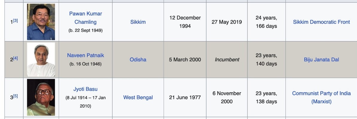 - Odisha's Naveen Patnaik became the second longest-serving chief minister in the country.