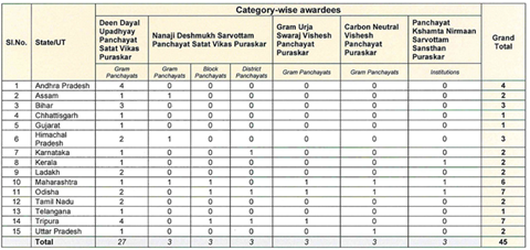 - The awards were given under several categories by the Panchayati Raj Ministry.