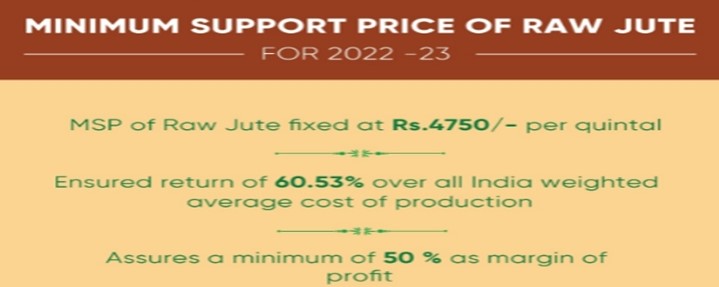 - The MSP for raw jute has been set at Rs. 4,750 per quintal for the 2022-2023 season.