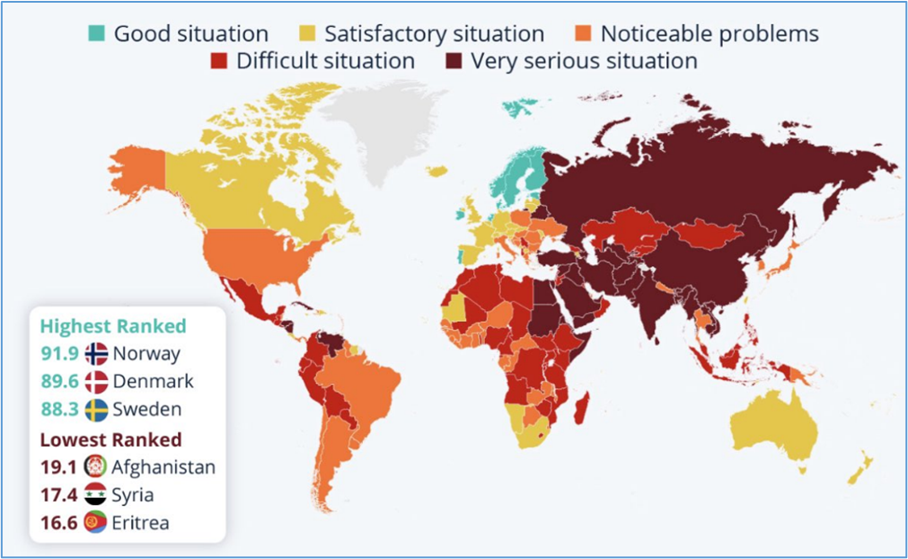 - Norway and Denmark topped the RSF table while Eritrea was at the bottom, with Syria just ahead of it.