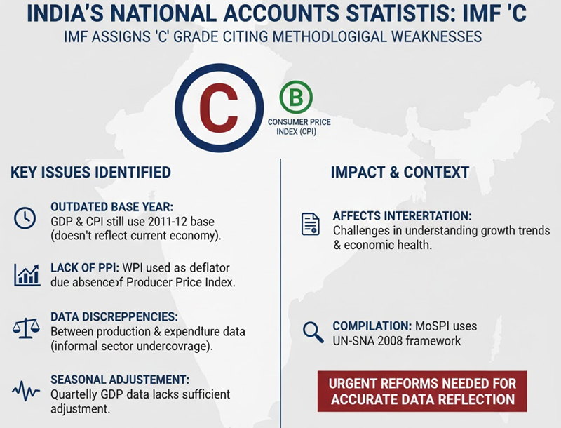 The International Monetary Fund (IMF) gave India’s National Accounts Statistics (NAS) a ‘C’ grade, citing methodological weaknesses.