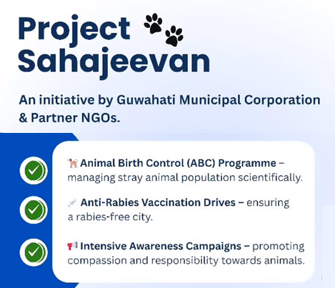 The Guwahati Municipal Corporation (GMC) launched the “Sahajeevan” project after the Supreme Court directives to shift stray dogs from public places to shelters.