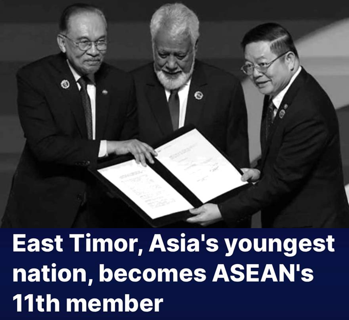 - East Timor, also known as Timor-Leste, became the 11th member of the Association of Southeast Asian Nations (ASEAN).
