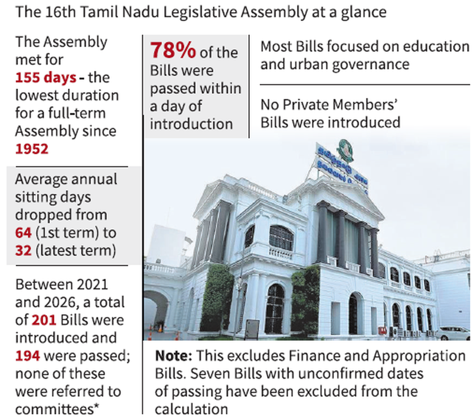 The tenure of the 16th Tamil Nadu Legislative Assembly is set to end on May 10, 2026, completing its five-year term.