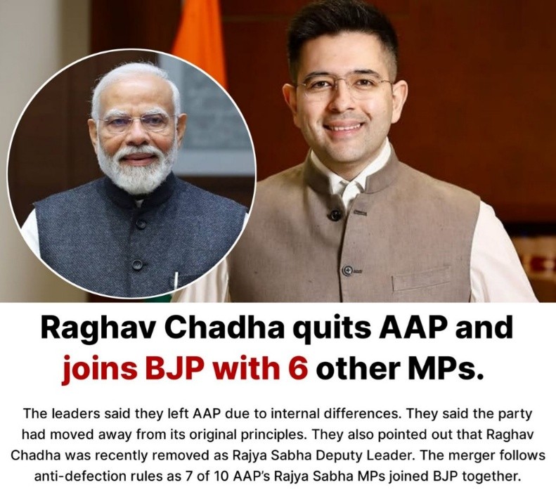 • Seven Aam Aadmi Party (AAP) Rajya Sabha MPs, forming over two-thirds of its strength, have defected to the Bharatiya Janata Party.