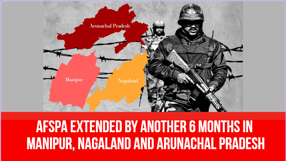 The Ministry of Home Affairs extended the Armed Forces (Special Powers) Act in parts of Manipur, Nagaland, and Arunachal Pradesh for six months from October 1, 2025.