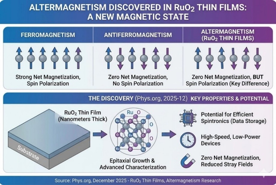 - The Japanese researchers have experimentally confirmed ruthenium dioxide as an altermagnet.