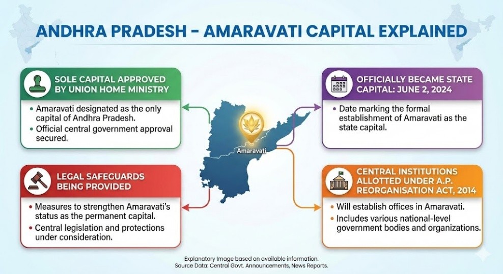 - Legal safeguards are being provided to strengthen Amaravati’s status as the capital.