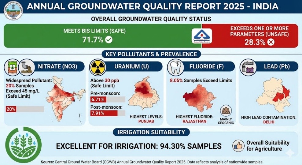 The Central Ground Water Board (CGWB) has released the Annual Groundwater Quality Report 2025.