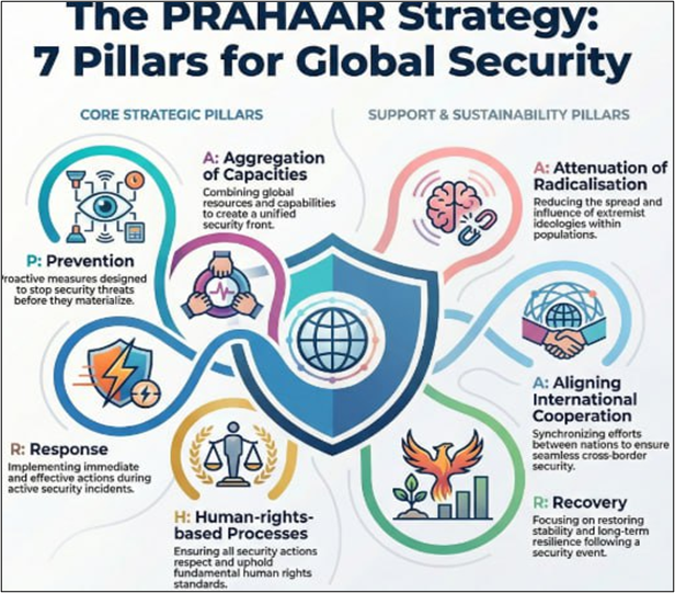 - PRAHAAR states that India faces terrorist threats through water, land, air, and cyber space.