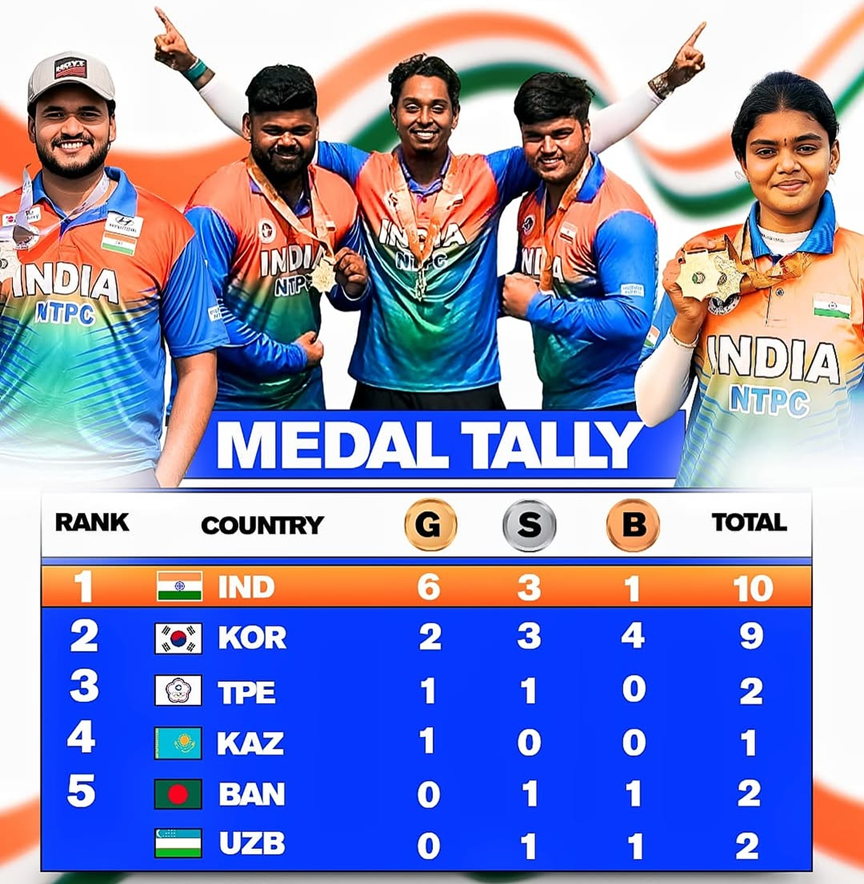 - India topped the 2025 Asian Archery Championships held in Dhaka, Bangladesh.