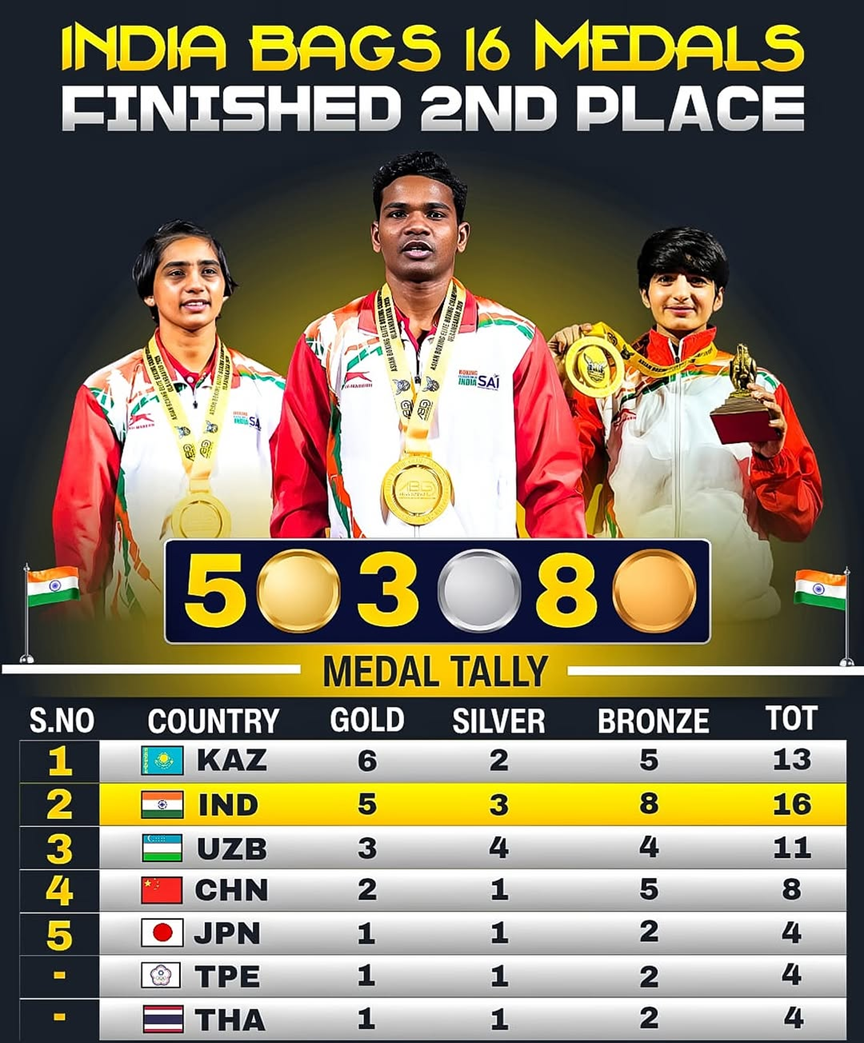 - India finished 2nd with 16 medals at the 2026 Asian Boxing Championships held in Ulaanbaatar (Mongolia), while Kazakhstan topped the medal tally.