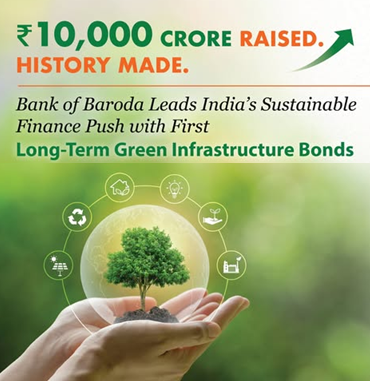 - Bank of Baroda has raised ₹10,000 crore through Series I long-term Green Infrastructure Bonds for funding eco-friendly projects.