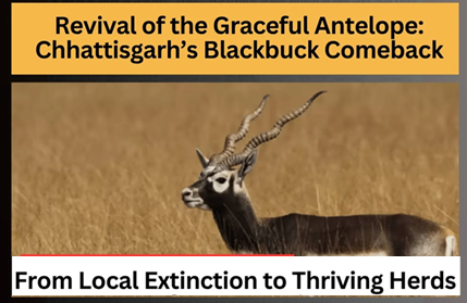 - The blackbuck was declared locally extinct in Chhattisgarh in 2017 due to poaching and habitat loss.