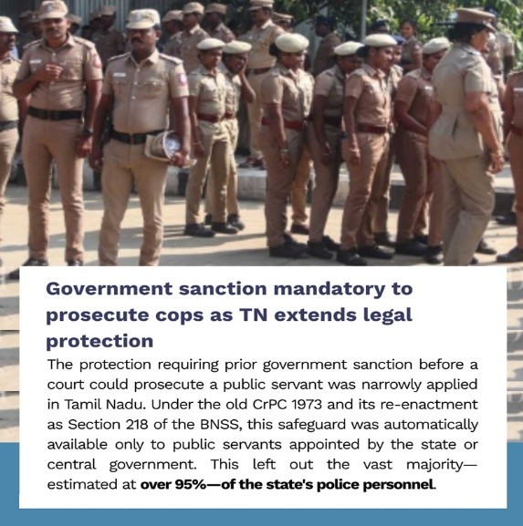 The Tamil Nadu government issued a notification extending Section 218(2) of BNSS (Bharatiya Nagarik Suraksha Sanhita) 2023 to all State police personnel.