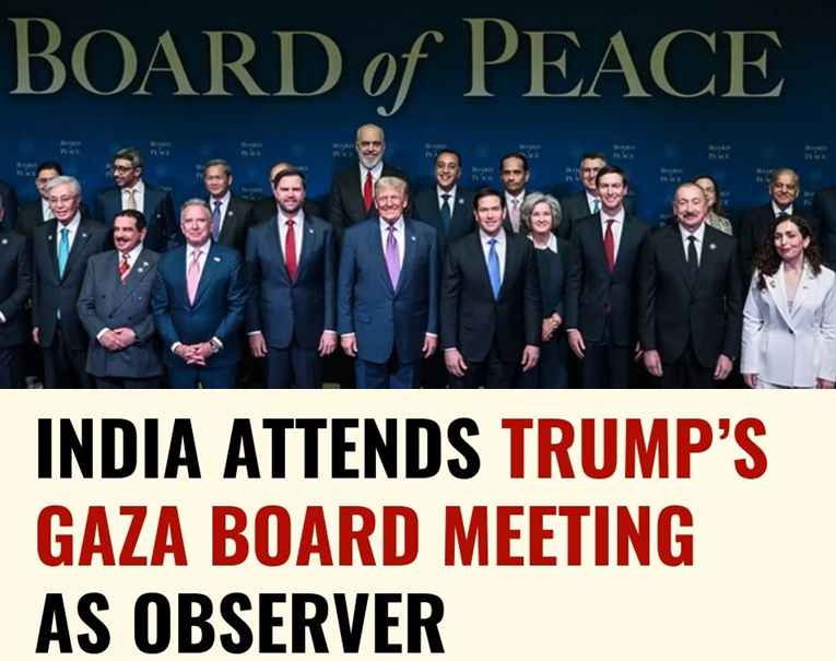 India attended the first meeting of Trump’s Board of Peace in Washington as an observer.