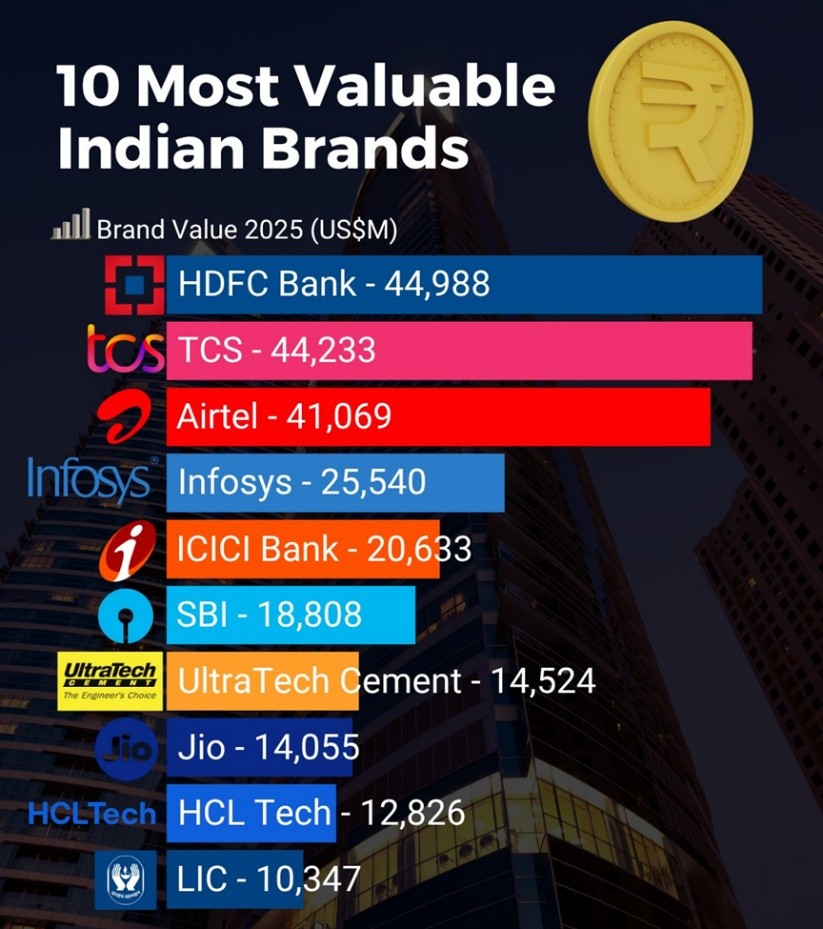 - HDFC Bank is India’s most valuable brand in 2025 with an estimated brand value of $45 billion.