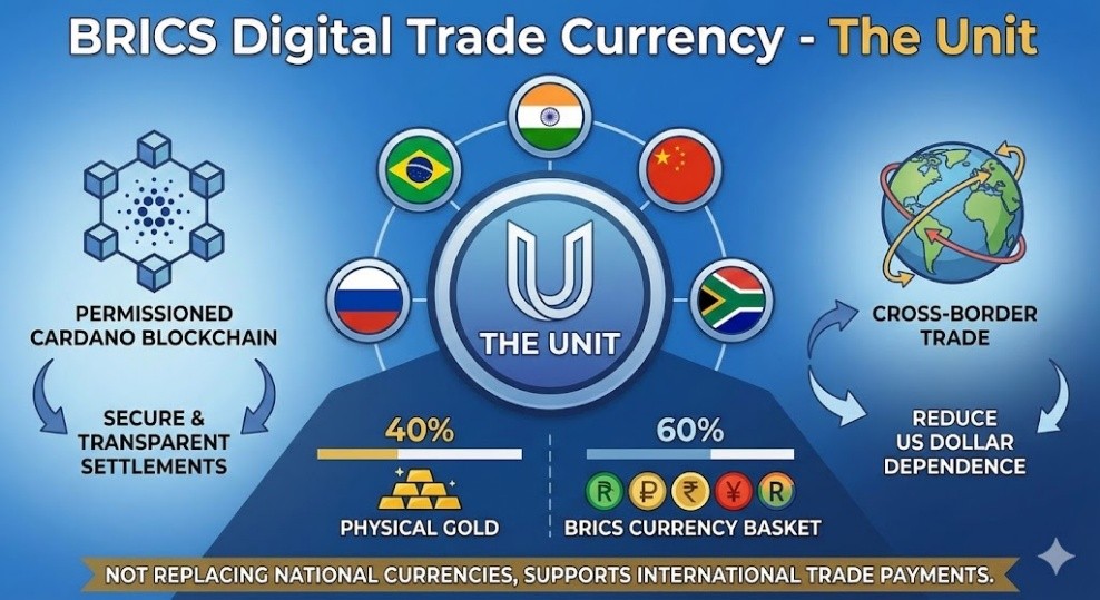 The Unit is a pilot digital settlement currency developed by IRIAS (International Research Institute for Advanced Systems) with the informal support from BRICS members.