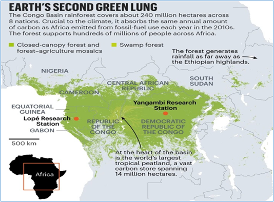 - The Congo Basin stores about one-third of the world’s tropical peatland carbon.