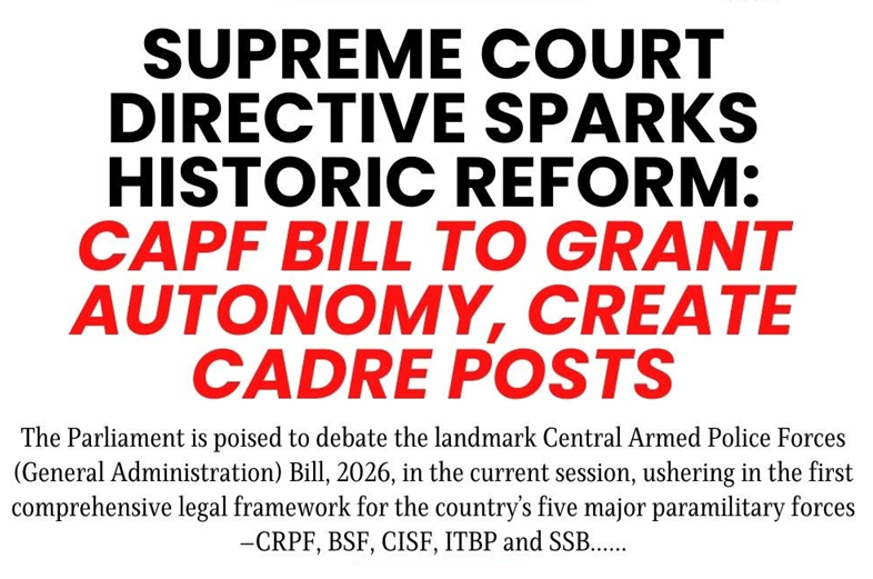 The Bill seeks to establish a comprehensive and uniform legal framework governing recruitment, promotions, deputation, and service conditions across all Central Armed Police Forces (CAPFs).