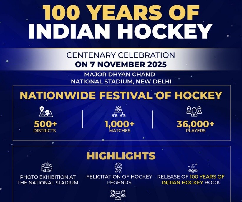 - India celebrated 100 years of hockey with special events across the country.