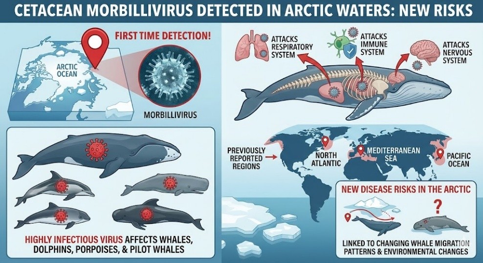 - The detection indicates new disease risks in the Arctic, linked to changing whale migration patterns.