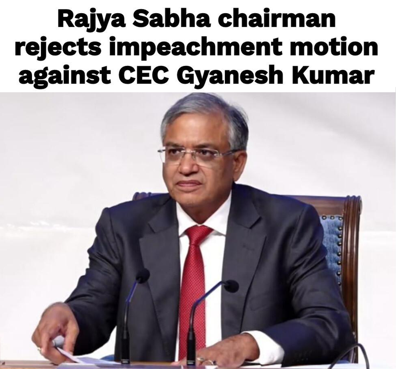 Rajya Sabha Chairman and Lok Sabha Speaker rejected the motion to remove Chief Election Commissioner (CEC) Gyanesh Kumar.