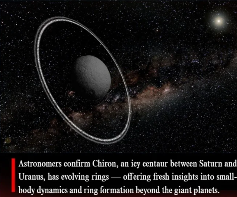 - Chiron’s rings appear to be made of water, ice and minor rocky material, possibly formed from past collisions or moon debris.