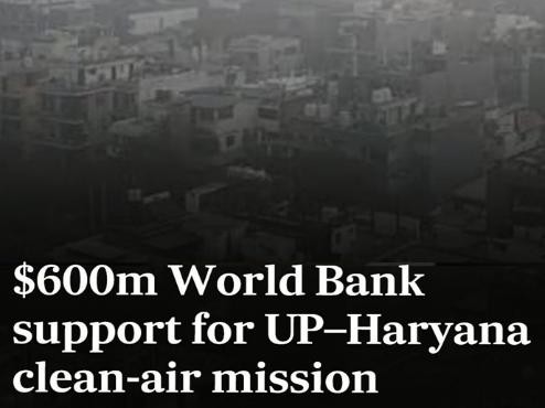 - The World Bank approved projects worth 600 million US dollars to improve air quality in Uttar Pradesh (UP) and Haryana.