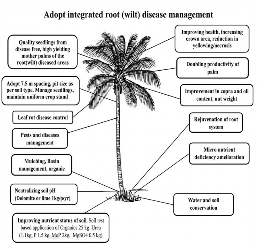 Coconut Root Wilt Disease is spreading rapidly in Kerala, Tamil Nadu, and Karnataka, affecting lakhs of coconut palms.