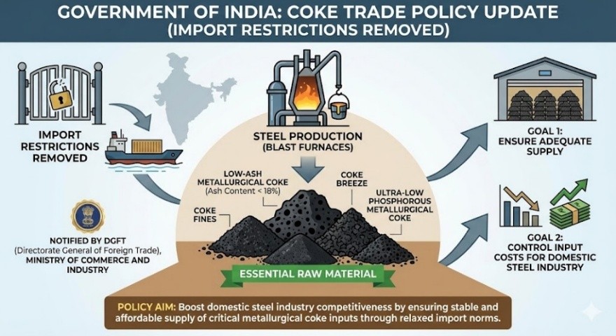 - The relaxation also covers coke fines, coke breeze, and ultra-low phosphorous metallurgical coke.