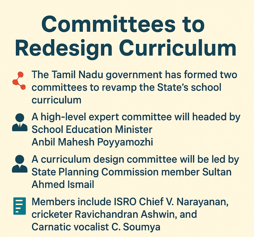 - The committees will redesign the curriculum in line with the Tamil Nadu State Education Policy 2025.