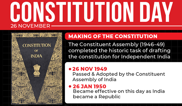 - The Government of India declared 26 November as Constitution Day in 2015.
