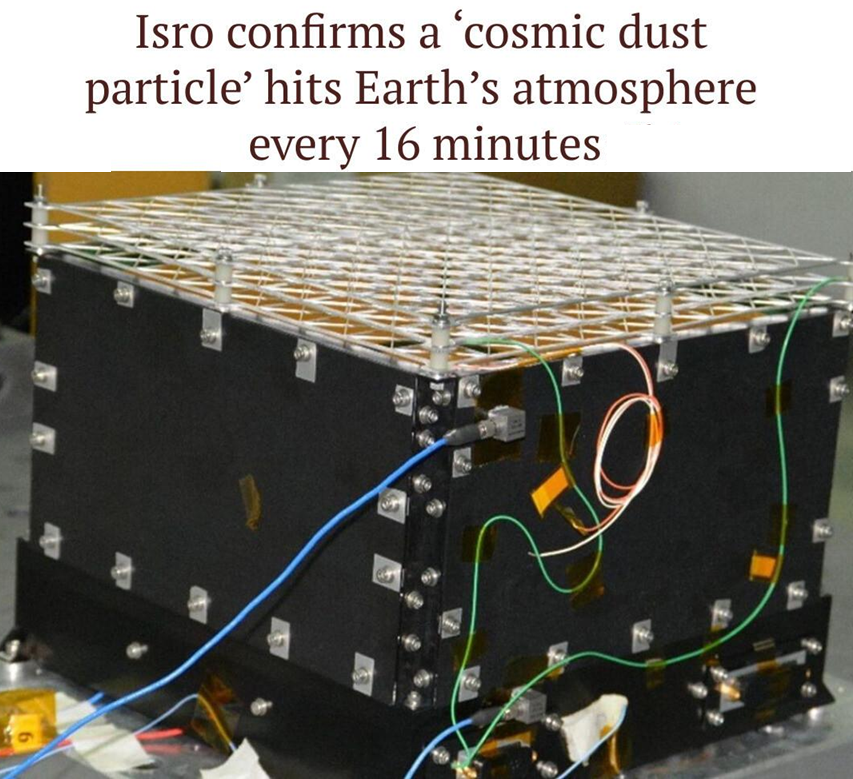 - ISRO reported that cosmic dust hits Earth’s atmosphere every 16 minutes.