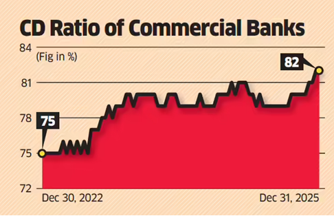 - Indian banks’ credit-to-deposit (CD) ratio reached a record 81.75% in 2025, showing strong lending demand.