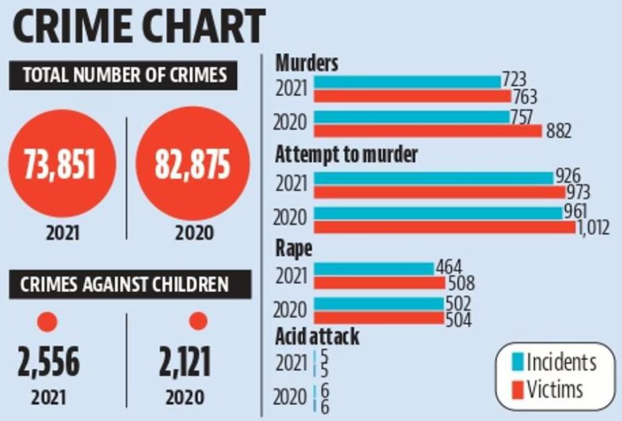 Delhi reported 7,769 cases with a high crime rate of 140.3, while the Andaman and Nicobar Islands had the highest rate at 143.4 per one lakh.