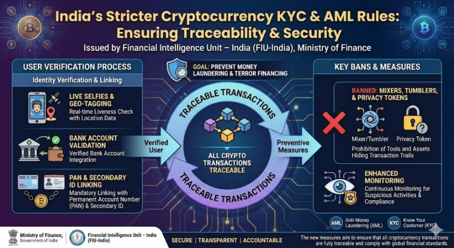 - India has introduced stricter Know Your Customer (KYC) and Anti-Money Laundering (AML) rules for cryptocurrency users.