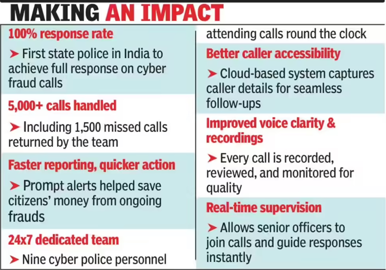 - Goa became the first state in India to achieve a 100% response rate to cyber-fraud calls through the cloud-based 1930 call centre.