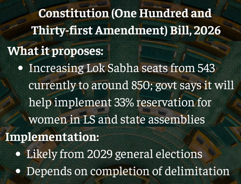 The proposed Delimitation Bill, 2026, outlines the structure and functioning of the Delimitation Commission for redrawing constituencies.