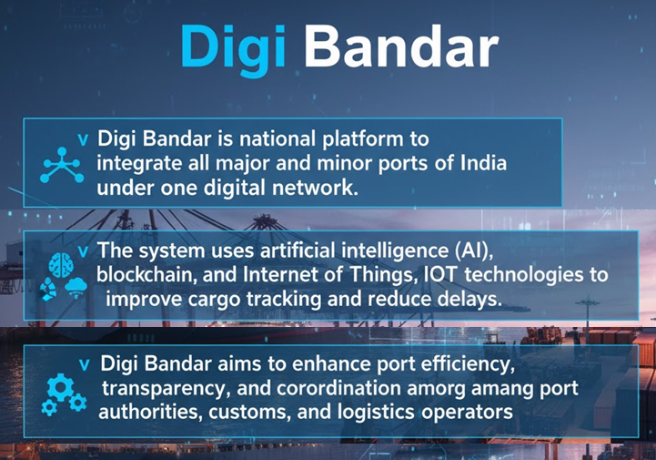 - India launched “Digi Bandar,” a national framework to make all ports data-driven, AI-enabled, and interconnected.