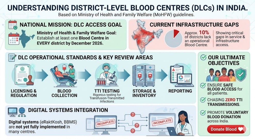 - The Ministry of Health and Family Welfare aims to establish at least one blood centre in every district by December 2026.
