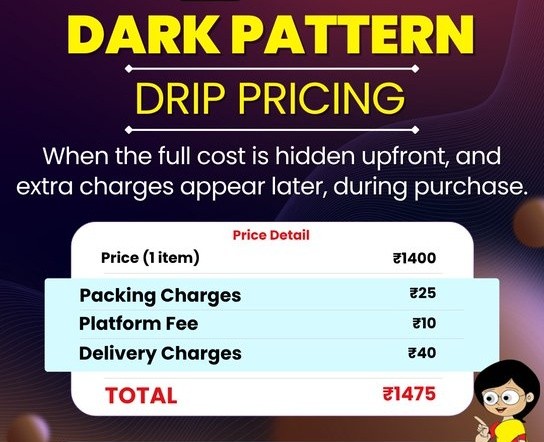 - Drip pricing occurs when hidden charges like service or convenience fees are added at checkout.