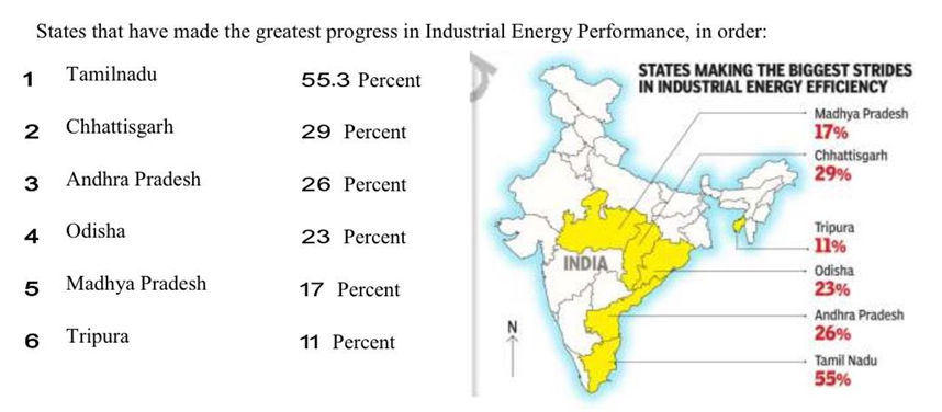 - Tamil Nadu scored 55.3% in the State Energy Efficiency Index 2024, the highest in India.