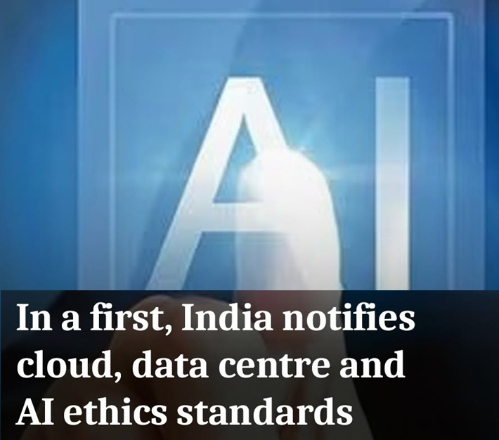 • The Government of India has notified the country’s first standards for cloud computing, data centre performance, and Ethical Artificial Intelligence (AI).