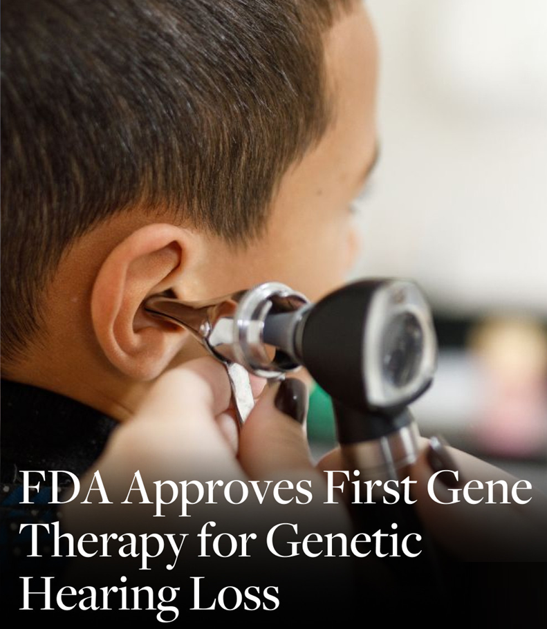 - The Food and Drug Administration (FDA) of USA approved the first gene therapy for genetic hearing loss.