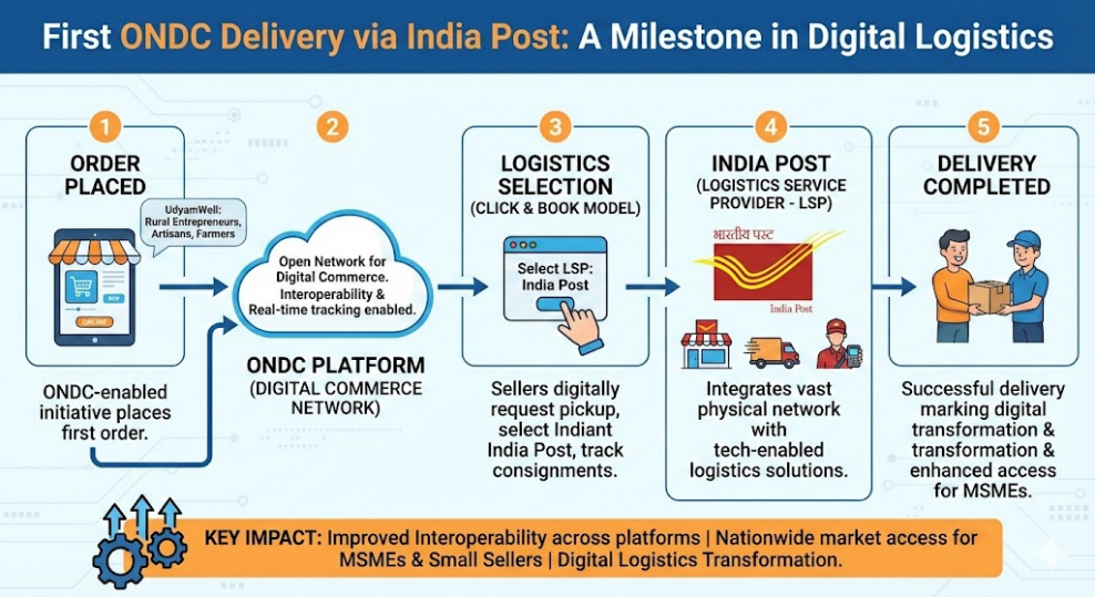 India Post acted as a Logistics Service Provider (LSP) under ONDC, integrating its vast physical network with technology-enabled logistics solutions.