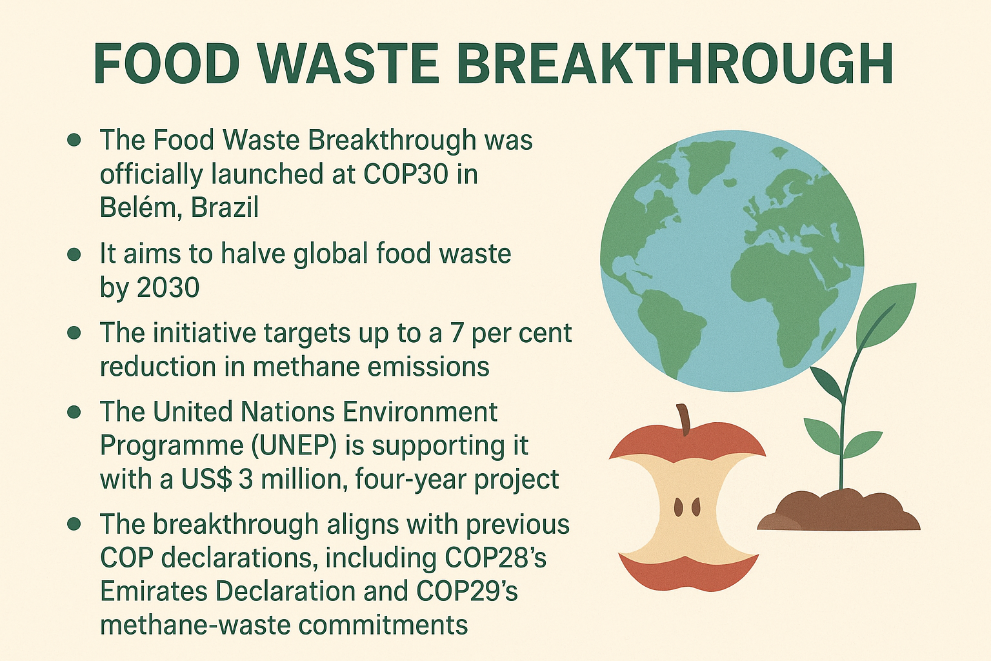- The Food Waste Breakthrough was officially launched at COP30 in Belém, Brazil.
