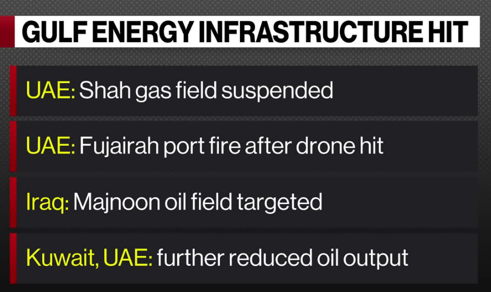 - Attacks also hit the Shah gas field, one of the world’s largest sour gas fields, halting production and supply.