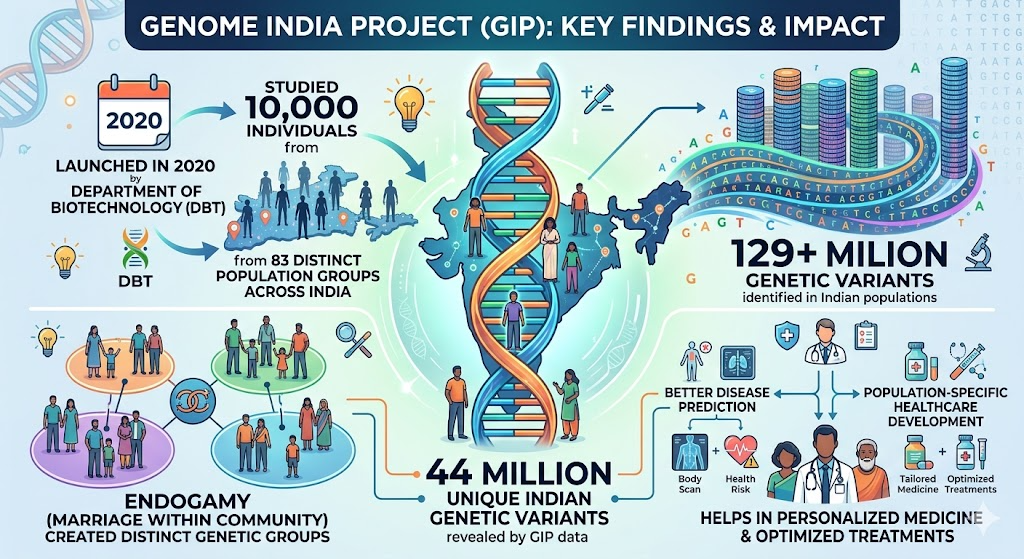- Genome India Project (GIP) data revealed about 44 million unique Indian genetic variants.